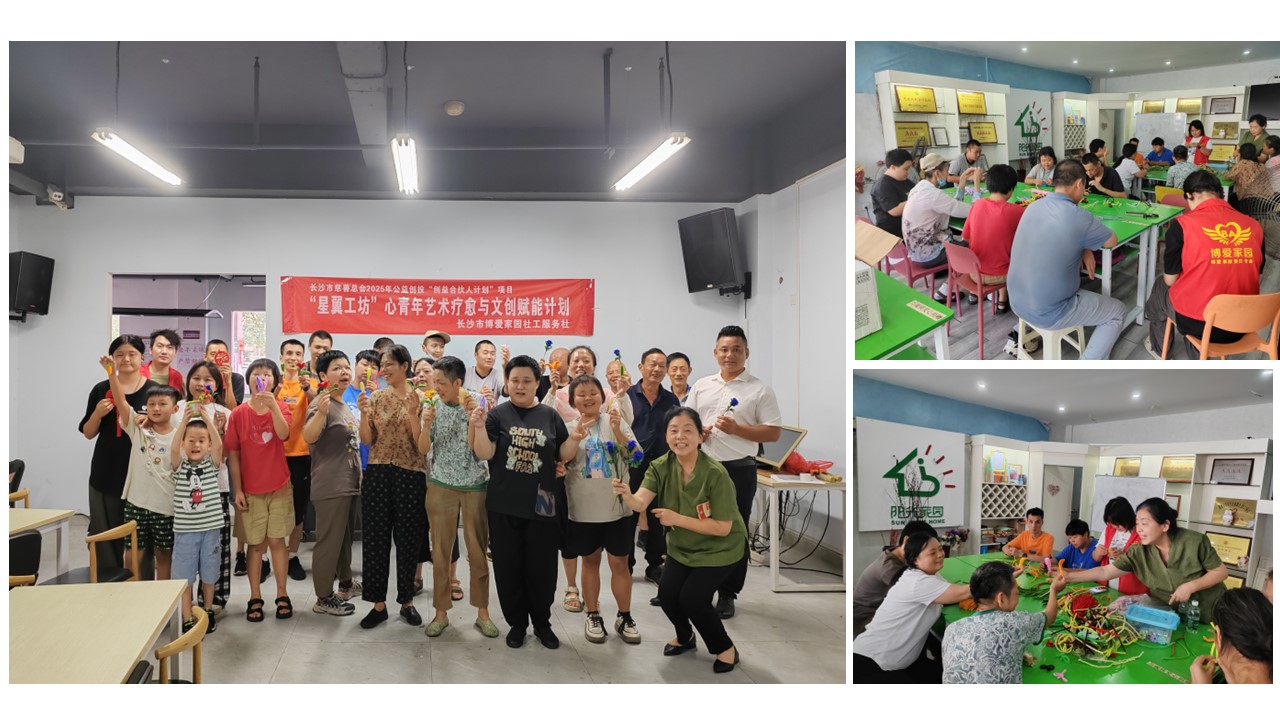8月29日,长沙市博爱家园社工服务社携手长沙市开福区博爱阳光家园残疾人托养机构组织20名心智障碍者开展“星翼创艺启航”文创技能培训第二课——学习制作扭扭棒花朵。该活动是长沙市慈善总会2025年公益创投“创益合伙人计划”——“星翼工坊”心青年艺术疗愈与文创赋能项目的内容之一,旨在通过艺术疗愈和文创技能提升,帮助心智障碍者增强自信、提升就业能力并融入社会。