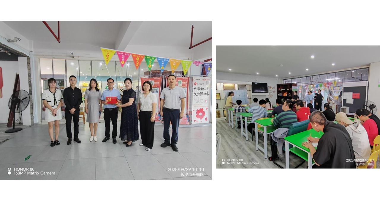 9月29日上午,在国庆、中秋双节来临之际,长沙市残联党组成员、副理事长贺海军带领开福区残联副理事长曹妍、开福区四方坪街道办事处人大工委副主任彭佳梦、滨江社区党总支书记陈佳一行,来到长沙市开福区博爱阳光家园进行走访慰问,为机构工作人员和心智障碍学员送上节日问候和祝福。