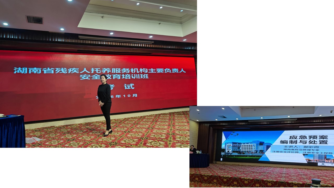 2025年10月23日至25日,由省残联主办、国家矿山安全监察局湖南局安全培训中心和湖南安全技术职业学院承办的湖南省残疾人托养服务机构主要负责人安全教育培训班在长沙举办。全省200多家残疾人托养服务机构主要负责人参加,长沙市开福区博爱阳光家园主任刘晓参加培训班学习。