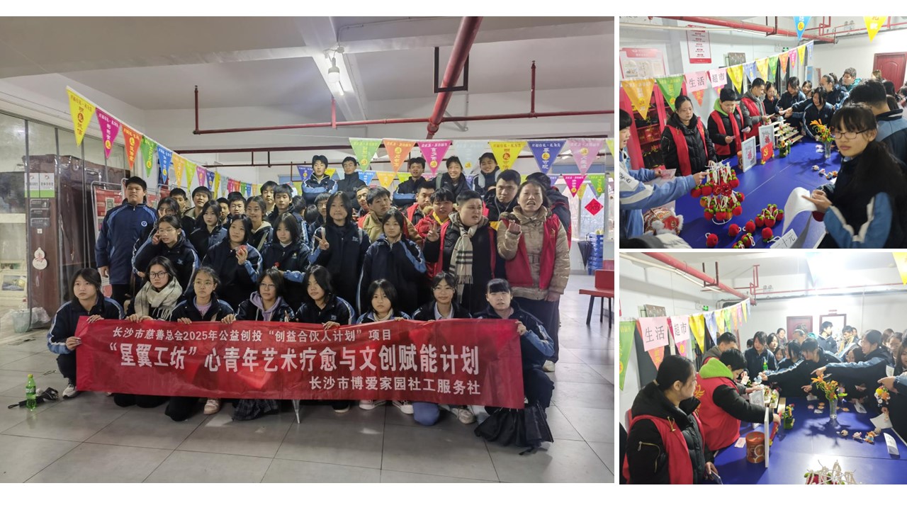 2026年1月30日下午,一场以“‘心’光闪耀·文创筑梦”为主题的心青年文创社区公益宣传推广活动温情启幕。活动由长沙市博爱家园社工服务社携手长沙市开福区博爱阳光家园残疾人托养机构共同举办,来自雅礼集团长沙大学附属中学C2301、C2302班的学生们陪伴心青年们(心智障碍者)度过了一段有意义的时光。本次活动是长沙市慈善总会2025年公益创投“创益合伙人计划”——“星翼工坊”心青年艺术疗愈与文创赋能项目的内容之一,旨在向社会推介心智障碍者群体及其文创作品,展现其积极向上的精神风貌与文创才华,传递支持心青年就业和融入社会的公益理念。