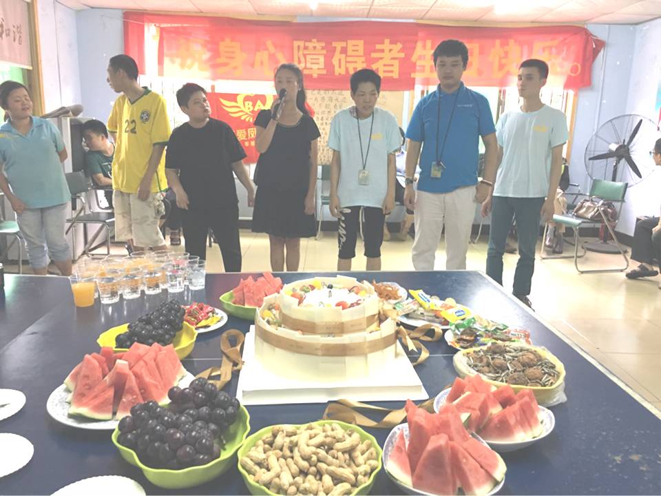 活动最后,杨老师邀请寿星说一说自己最想说的话,并让其他学员送上生日的祝福。“祝你生日快乐,祝你生日快乐……”伴随着欢快的歌声,我们的“寿星”许下了自己的心愿,一同吹灭了生日蜡烛,并一起切生日蛋糕,向每一位来宾送上了生日蛋糕。机构也精心为生日学员送上了礼物——卡通水杯和零食,希望大家一辈子都是相亲相爱的一家人,天天都开心快乐。此次生日会的开展,把大家凝聚在一起,拉近了彼此的关系,也让心智障碍学员感受到了爱与关怀。生日会是大家最为期待的聚会,我们将一直不遗余力将此活动举行下去。