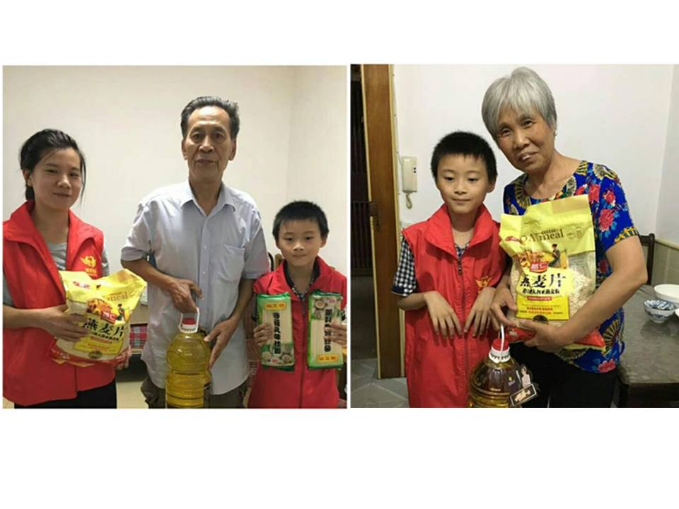 下午2:00小志愿者们在仰天湖社区集合,在社工的带领下,小志愿者自主在超市购买了面条、大米和食用油作为送给老人的慰问物品。来到社区空巢老人的家里,小志愿者们为老人送上了慰问品,随后又陪老人聊聊天、谈谈心。小小的帮助和关心,但给老人带来了巨大的温暖。