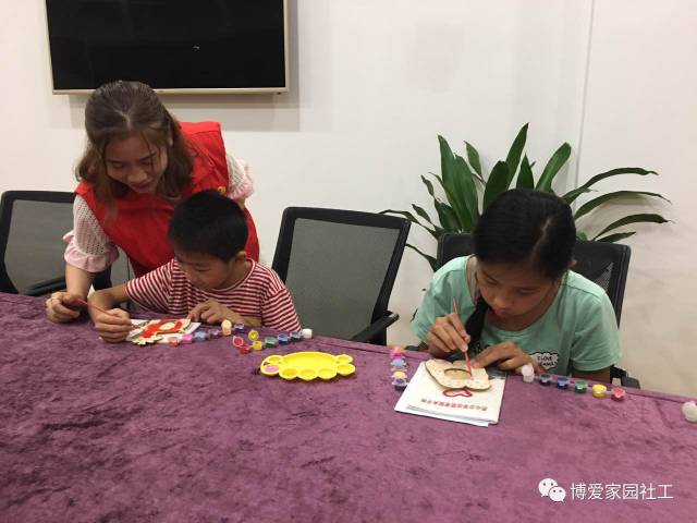 社区青少年踊跃参加了本次活动。这次手工制作是将孩子们自己喜欢的颜料涂在相框上美化相框,让照片更出色。活动课上,博爱家园社工首先向参与者讲解了颜色的搭配、色彩的运用等知识。 随后,社工给孩子们讲授了颜料的使用方法。在制作过程中,孩子们按照社工老师的指导,耐心、细心的慢慢的为无色的相框加上了自己喜欢的颜色,完成了一个个自己配色的漂亮的相框。制作完成后,孩子们主动将桌面、颜料盘、毛笔清洗干净,社工为孩子们的优秀表现点赞。