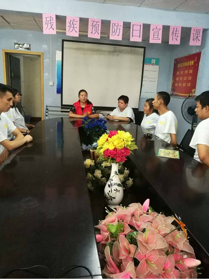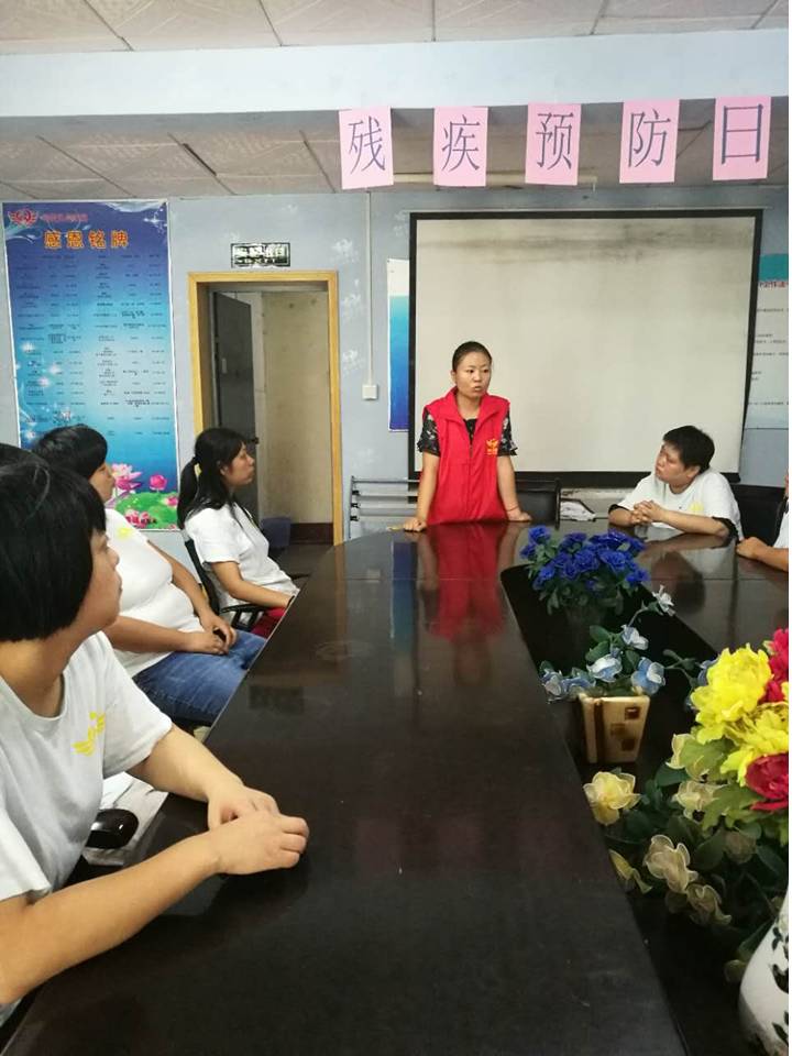 本网讯:2017年8月25日是全国第一个“残疾预防日”。2017年9月1日博爱家园组织机构心智障碍学员围绕“残疾预防”这一主题在机构二楼会议室开展了专门的宣传培训活动。活动内容以宣传《残疾预防和残疾人康复条例》、《国家残疾预防行动计划(2016年~2020年)》以及残疾预防核心知识为重点。机构谢老师为心智障碍学员讲解预防残疾的基础知识,讲授如何有效控制出生缺陷和发育障碍致残、如何防控疾病致残、如何减少伤害致残等。本次宣传培训活动旨在让学员学会识别主要致残风险,了解预防残疾的有效途径和方法,增强全社会残疾预防意识。培训结束后,有部分学员主动上前咨询关于预防残疾的各类问题。同时,机构在学员家长微信群里推送了《残疾预防知识手册1》、《残疾预防知识手册2》等宣传资料,便于家长学习和了解残疾预防的相关知识。