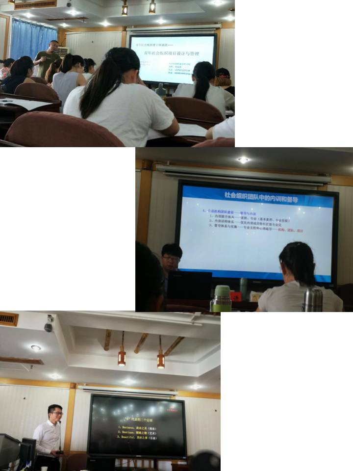 本次培训班8月28日正式开班,主要培训形式为专题讲座+素质拓展。专题讲座的内容包括:《新形势下的青年社会组织发展》(主讲嘉宾:共青团长沙市委副书记赵雪峰)、《慈善法解读:青年社会组织法律基础与风险预防》(主讲嘉宾:湖南弘一律师事务所副主任尹兰英)、《青年社会组织领导力及团队建设》(主讲嘉宾:长沙市社会工作协会秘书长周浪谦)、《青年社会组织项目开发与管理》(主讲嘉宾:长沙民政职业技术学院副教授刘战旗)《青年社会组织资源整合与品牌打造》(主讲嘉宾:《财富品质》执行出版人/要客合伙人欧家锦)、《青年社会组织新媒体运营推广及文书写作》(主讲嘉宾:共青团长沙市委宣传部部长谢波)。