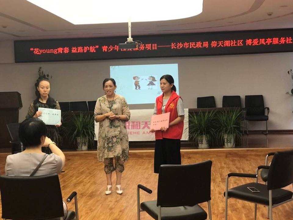 本网讯:2017年9月19日上午9:30-11:30,在仰天湖社区活动中心开展了“亲子共成长,正面管教(家长篇)”第二场。博爱社工服务社邀请了悦和教育正面管教讲师冬青老师主讲。参与这次讲座的有全职妈妈,也有专门请假过来的职场妈妈。此次讲座由长沙市民政局、仰天湖社区、博爱家园社工服务社一同开展,是2017年度社会工作发展示范创建项目——“花young青春·益路护航”青少年社会工作服务项目的内容之一。“亲子共成长,正面管教(家长篇)”课堂一共在本月开展四场,第二场主题是“身教言传,给孩子阳光和水”。