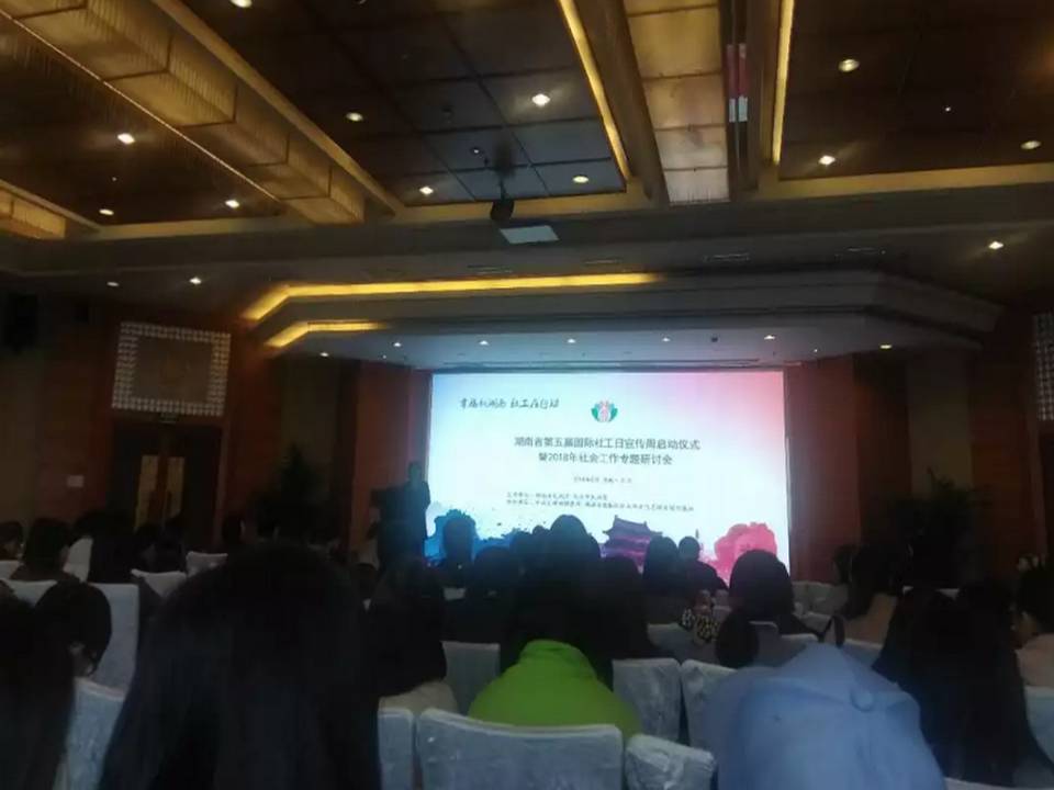 本网讯:2018年3 月 19 日上午,由湖南省民政厅、长沙市民政局主办,中南大学湘雅医院、湖南省健康社会工作者与志愿者培训基地承办的湖南省第五届国际社工日主题宣传周启动仪式暨 2018 年社会工作专题研讨会在长沙世纪金源大酒店三楼举行。博爱家园社工刘晓、杨佩英、谢婷参加了此次活动。现场,来自全省各市州县近200 名社工界的专家、学者汇聚一堂。会上,湖南省民政厅厅长唐白玉宣布第五届国际社工如宣传周正式启动。