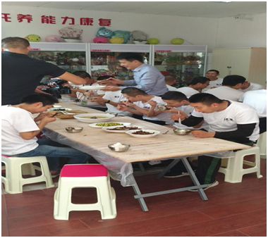 美食飘香,情暖憨儿。王心亮总经理介绍,这次提供的爱心午餐,所有菜品都是精心准备,其中很多都是店内的招牌菜。王心亮总经理热情地为残障学员夹菜添菜,告诉大家各式菜品,并让每位残障学员都能吃到不同的菜品。美食当前,学员们格外兴奋,他们高兴地品尝每一道菜肴,赞不绝口。看到学员们吃的开心,王心亮总经理和员工们感到特别欣慰。