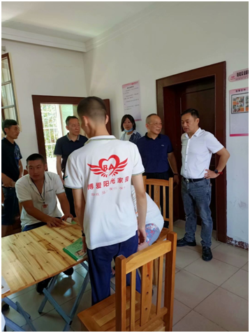 本网讯:2020年7月22日上午,湖南日报新闻培训学院院长助理兼全媒体分院院长郭宏波先生、符志中先生、湖南广播电视台芒果V基金项目负责人刘常青女士一行前来开福区博爱阳光家园残疾人托养机构考察慰问。