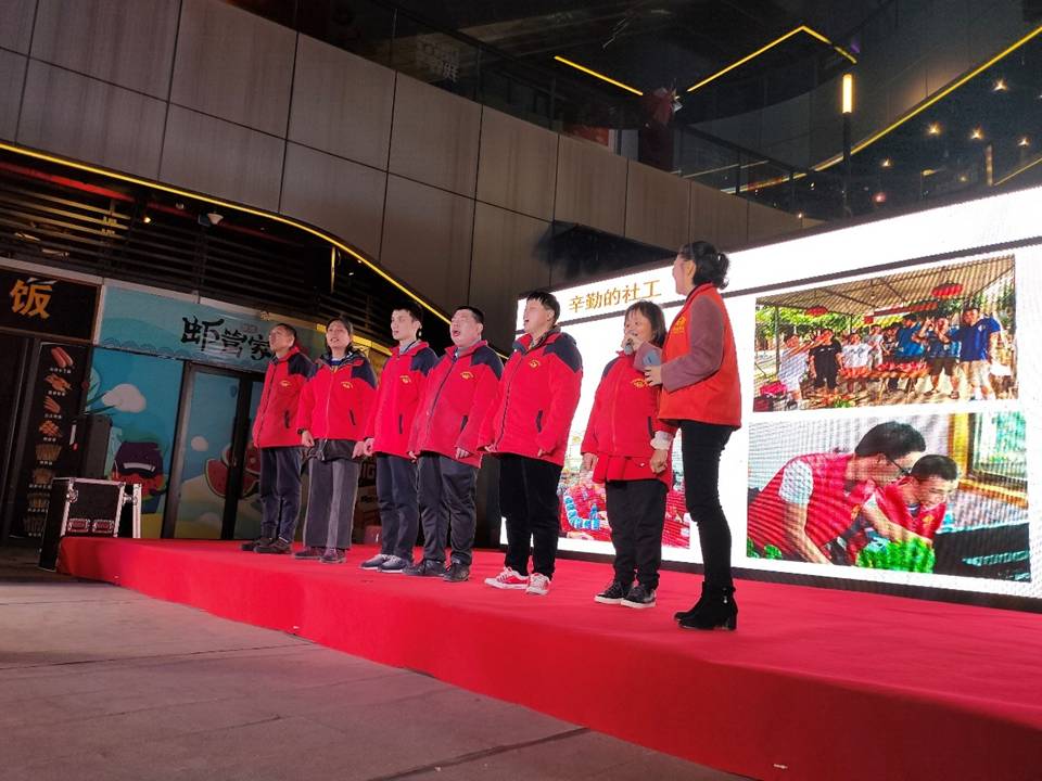 2021年3月22日晚上6时,长沙市开福区博爱阳光家园残疾人托养机构的心智障碍“憨儿们”在机构主任刘晓老师的带领下来到位于浏阳河街道海棠湾社区的五矿•长沙live韵味街,参加浏阳河街道社工宣传周主题活动。