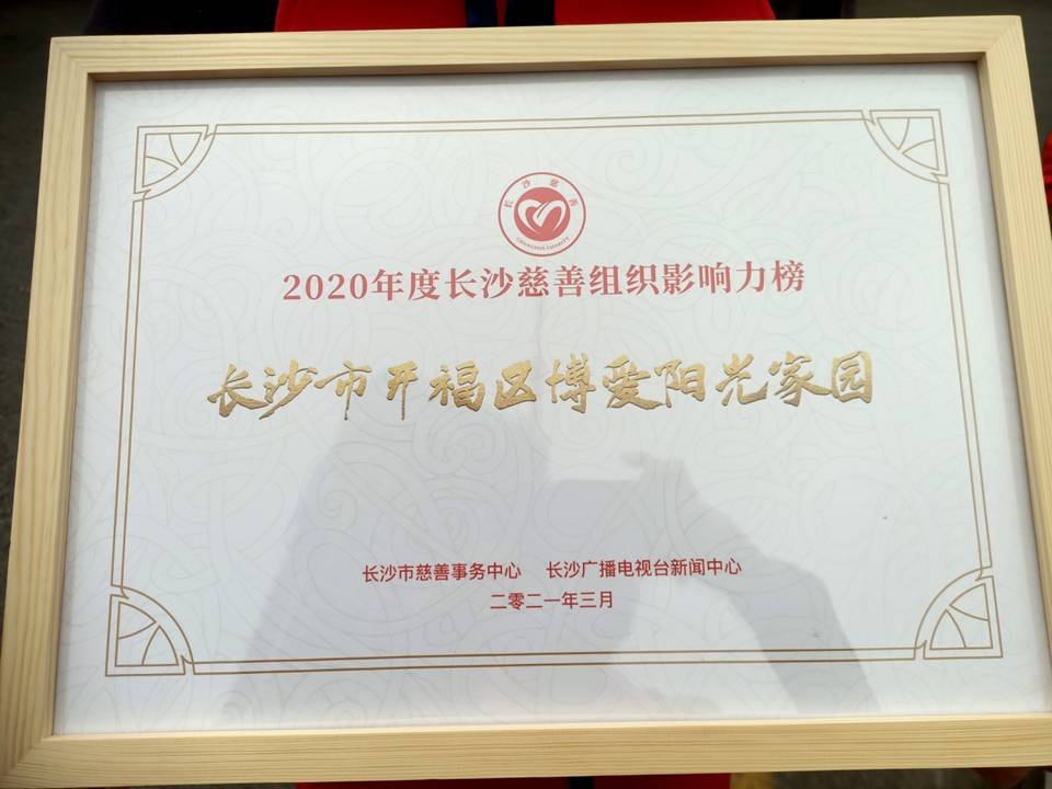 3月31日,由长沙市民政局、市文明办、团市委、市妇联指导,市慈善事务中心、长沙电视台新闻中心主办的2020年度“长沙慈善榜”发布典礼在长沙市雨花区群众艺术馆举行。活动现场公布了“2020年度长沙慈善捐赠榜”以及“2020年度长沙慈善影响力榜”,颁发奖项包括长沙慈善单位捐赠榜、长沙慈善个人捐赠榜、长沙慈善组织影响力榜、长沙慈善项目影响力榜等,一批优秀个人、企业及典型公益项目登上榜单,在舞台上熠熠生辉,用爱传递着温暖和力量。长沙市开福区博爱阳光家园荣膺“长沙慈善组织影响力榜”奖项,机构老师及残障学员们参加了颁奖活动。