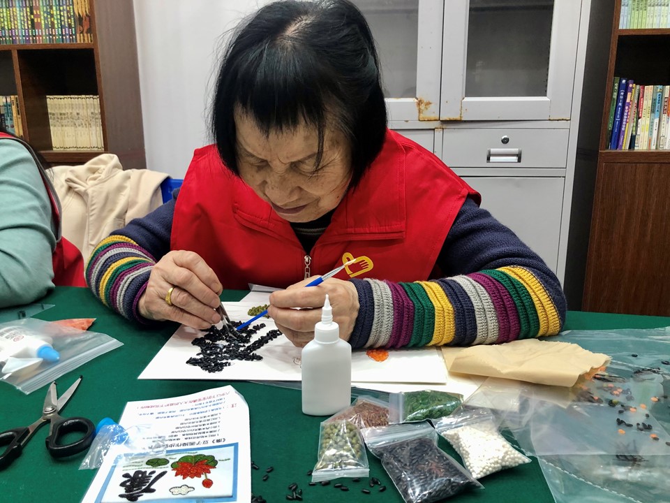 夏家冲社区老党员集体手工制作五谷杂粮黏贴画,齐声歌唱红歌......4月20日上午,天心区金盆岭街道夏家冲社区阅览室一派热闹景象,夏家冲社区携手长沙市博爱家园社工服务社开展的“忆苦思甜守初心 五谷绘廉扬清风”主题党建小组活动如期举行。夏家冲社区8位退休老党员参加,最高年龄85岁。