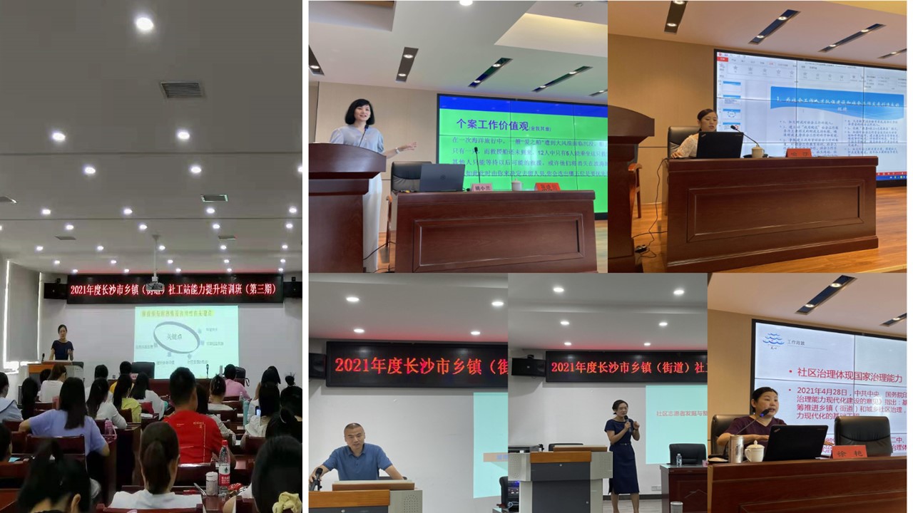 本次培训内容充实、形式多样,可操作性强。长沙市雨花区孝为先社工服务中心理事长姚小兰讲授了课程《个案工作——对象筛选与问题界定》;长沙市民政局慈善与社会工作处处长喻莎讲授了《长沙市社会工作发展现状》;湘潭大学社会工作专业硕士生导师王林丽讲授了《社区志愿者发掘与整合与社区公共空间整合运营》;湖南省民政厅基层政权建设和社区治理处副处长莫健飞讲授了《社区治理与社会工作》;长沙市社会工作协会会长徐艳分享了天心区社区治理经验。