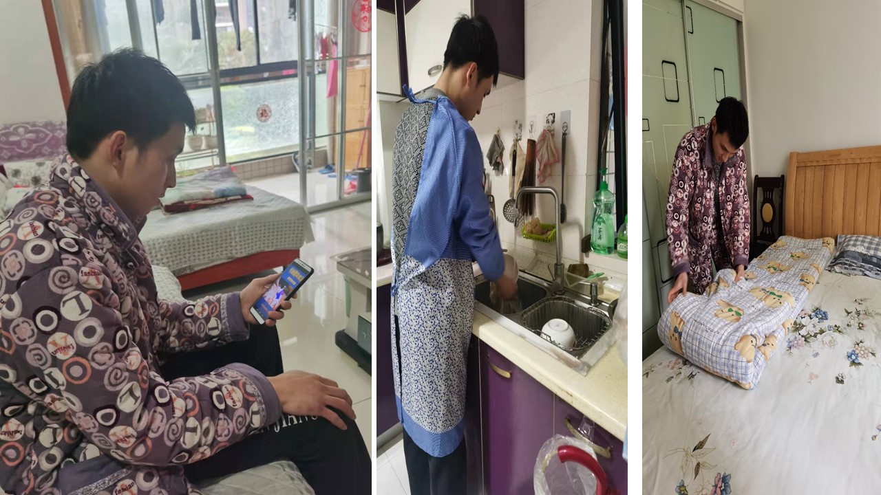 春寒料峭,真情暖心。“线上课程丰富多彩,孩子在家里每天都准时上课,还抢着做家务。”学员家长们每天通过家园沟通群向机构老师反馈学员们在家里学习和生活情况。心智障碍学员们除了按时进入“空中课堂”学习,还按机构的要求,每天进行生活自理能力训练,在家中承担洗碗、扫地、拖地、家居整理、摘菜力所能及的家务劳动。